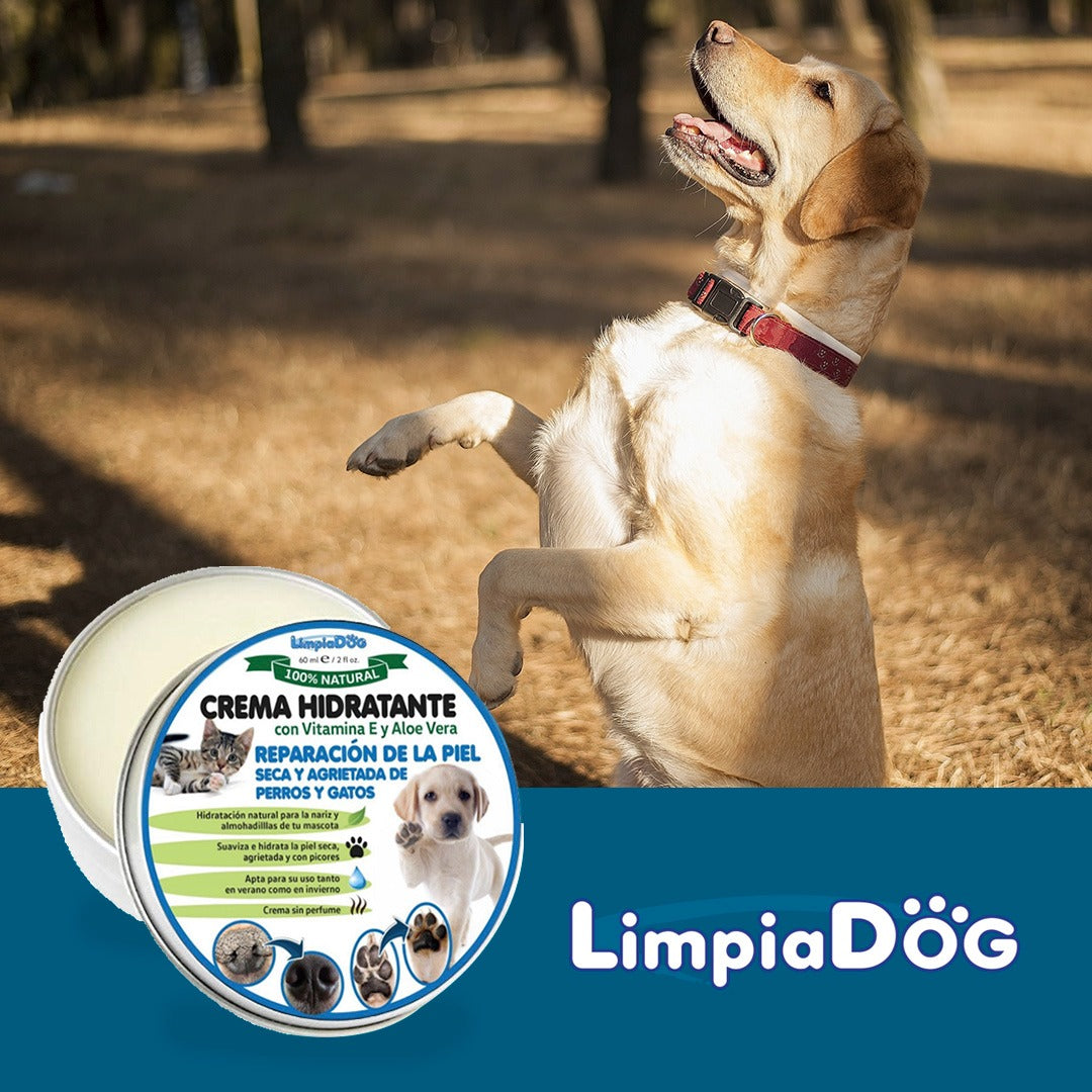 Compré esta crema porque mi perro tenía la nariz muy muy reseca, agrietada y le salía sangre de las grietas de tan mal q lo tenía. Me llegó la crema, se la he puesto durante 4 días y ya está casi curada. Funciona perfectamente.